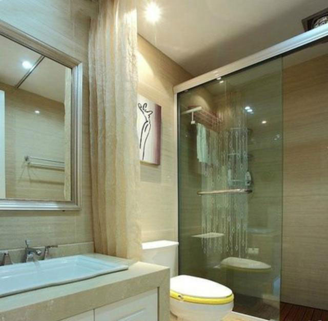 二、 用“玻璃墻+布簾子墻”讓“洗漱、如廁、淋浴”三分離